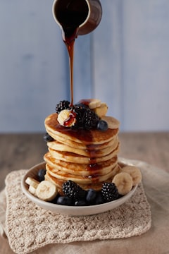 Light and fluffy pancakes sweetened with Jaca sugar, served with fresh blueberries.
