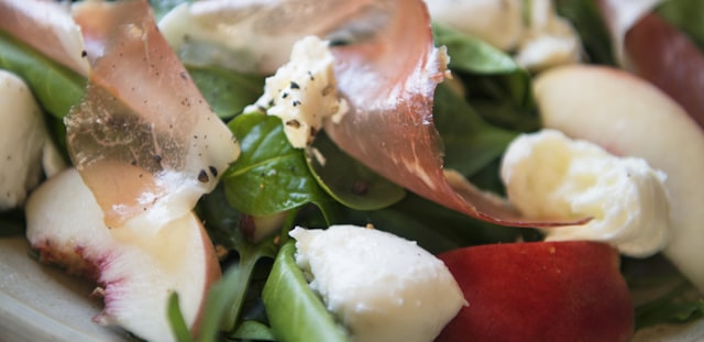 Jaca Glazed Grilled Peach and Prosciutto Salad